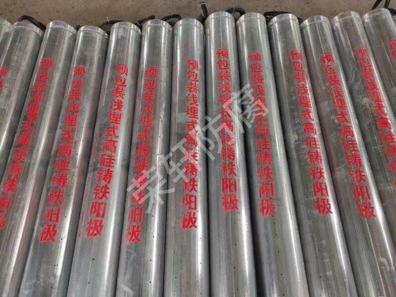 深井陽極一般采用硅鐵陽極或混合金屬氧化物筒狀陽極,鋪設好陽極后用冶金焦炭或者煅燒石油焦炭回填陽極溝而成。通常情況下埋在15--20米以下并以豎直方向擺放。